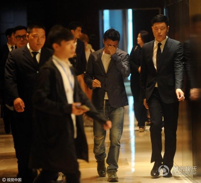 谢霆锋揉眼睛一脸疲态获众人簇拥保镖开路